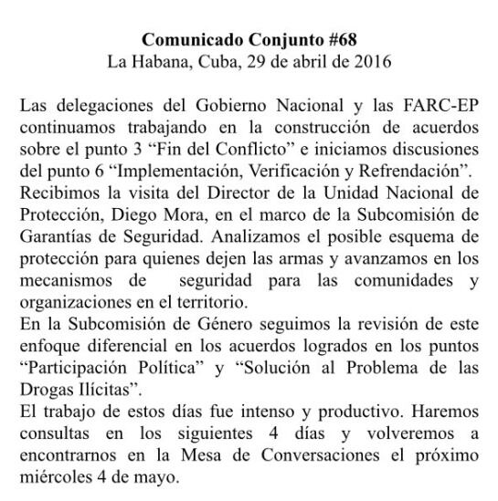 El próximo 4 de mayo vuelven a La Habana a terminar de acordar temas sobre seguridad y paramilitarismo.