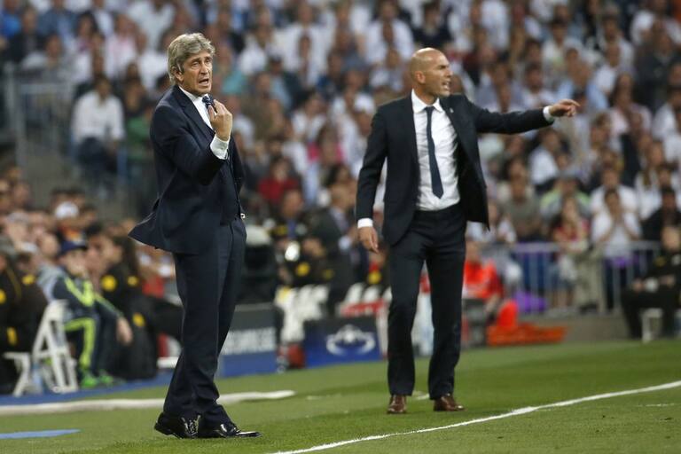 Zidane y Pellegrini dan indicaciones a sus dirigidos.