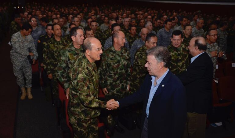Ante más de 600 oficiales del Ejército, la Armada y la Fuerza Aérea, y más de 70 oficiales de la Policía, en la denominada, ‘Cátedra Colombia’ que dictó el propio presidente Juan Manuel Santos en el Teatro Patria de Bogotá, el mandatario les aseguró que no están negociado en Cuba la estructura de la Fuerza Pública del país pese a la insistencia de la guerrilla.