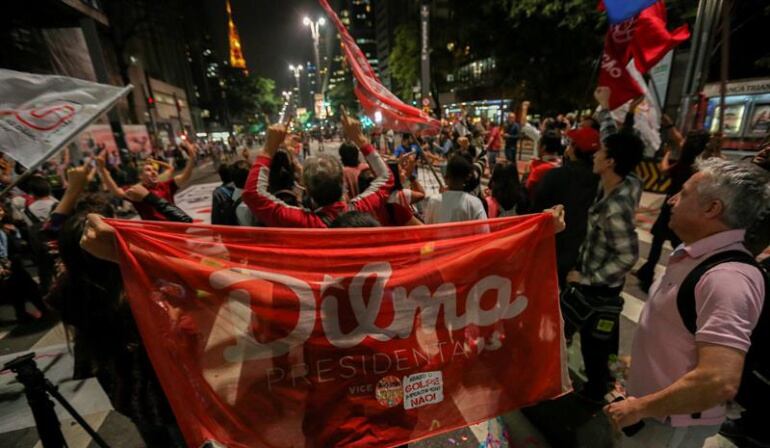 Los manifestantes califican como un golpe de Estado el impeachment del Senado para sacarla del cargo.