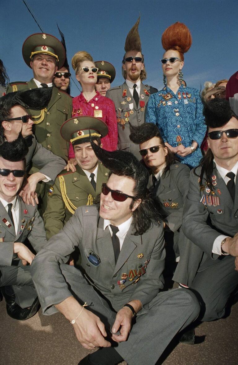 Los vaqueros de Leningrado , las damas de Leningrado y los actores del Ejército Rojo. Desfile en la Croisette en Cannes durante la 47ª edición del Festival Internacional de Cine de Cannes - 19 mayo de 1994.