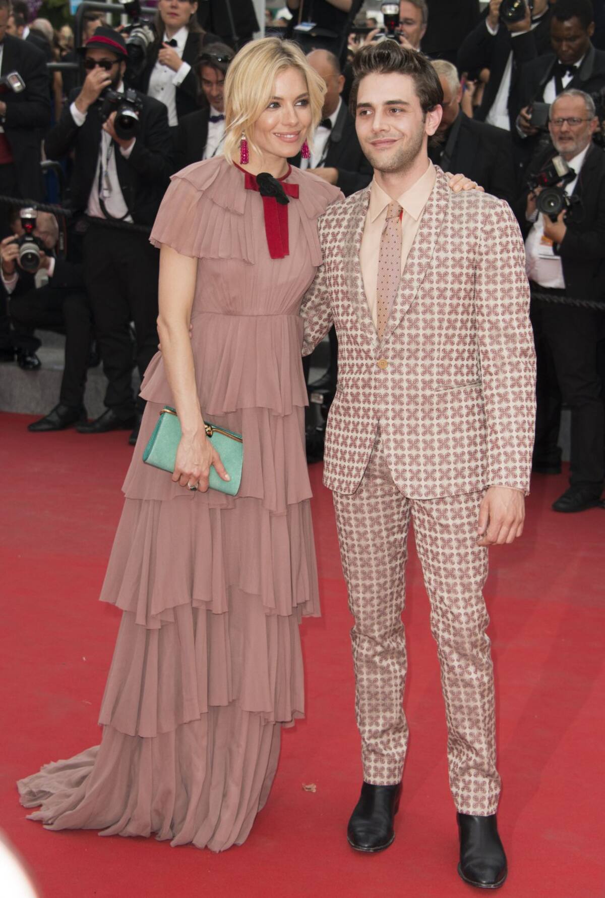 Sienna Miller y Xavier Dolan posan para los fotógrafos a su llegada a la proyección de la película Macbeth en el festival internacional de cine 68º , Cannes - 23 de de mayo de 2015.