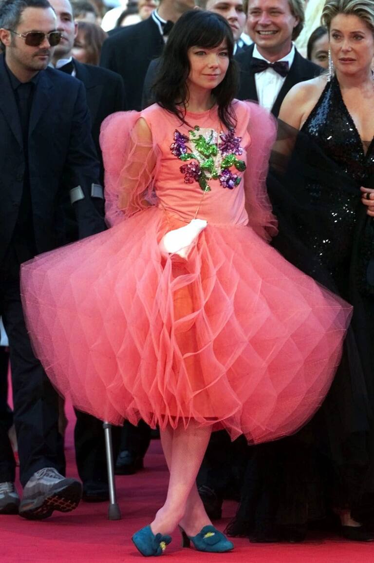 Bjork, estrella del pop llega al Palacio del Festival para asistir a la proyección de su película " Bailar en la oscuridad ", dirigida por Lars von Trier de Dinamarca en competición en el 53 Festival Internacional de Cine de Cannes - 17 de mayo del 2000