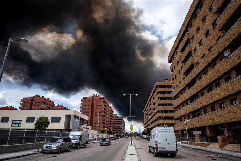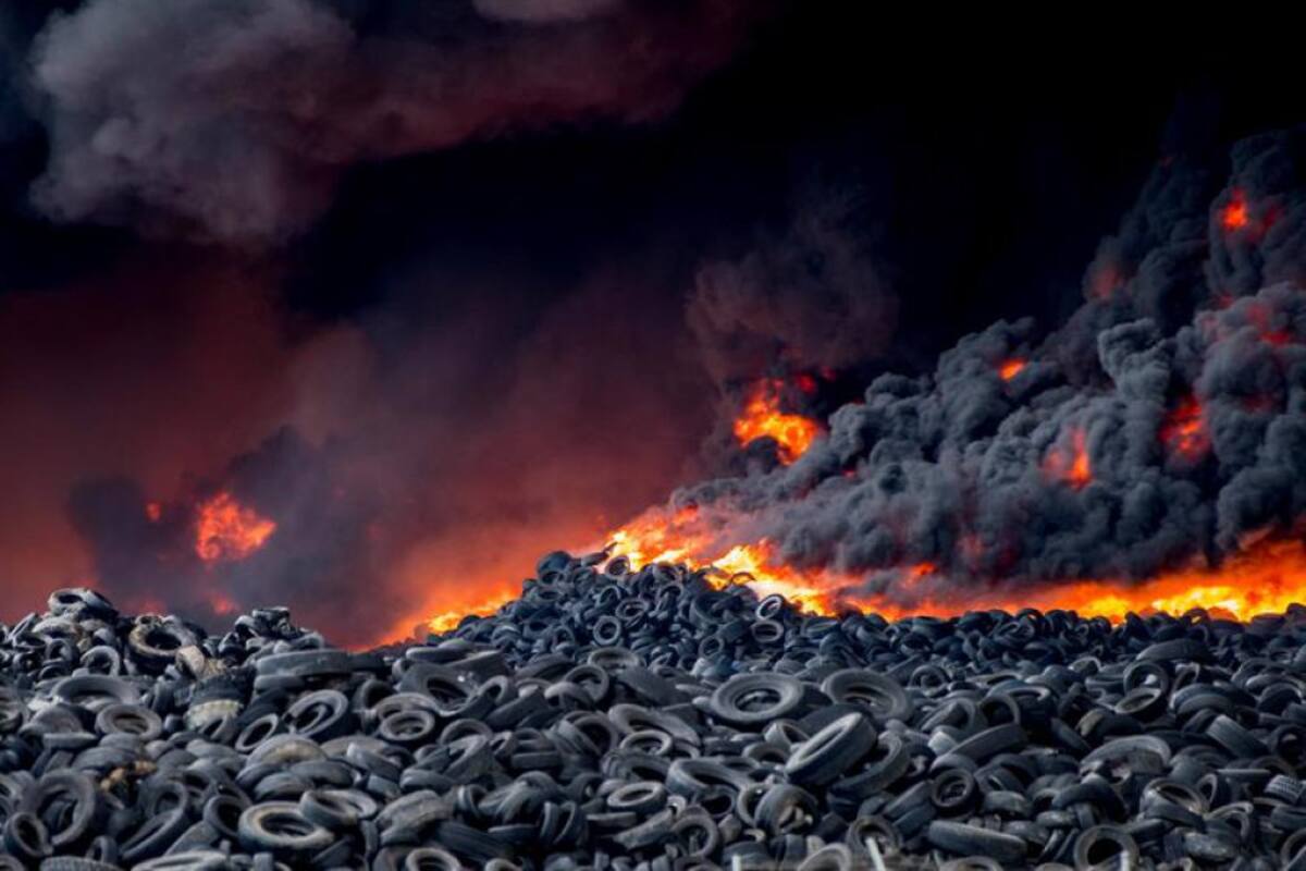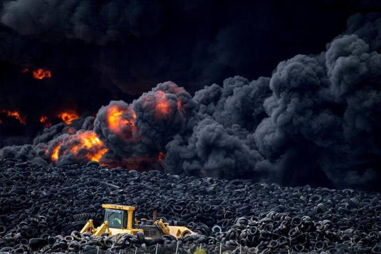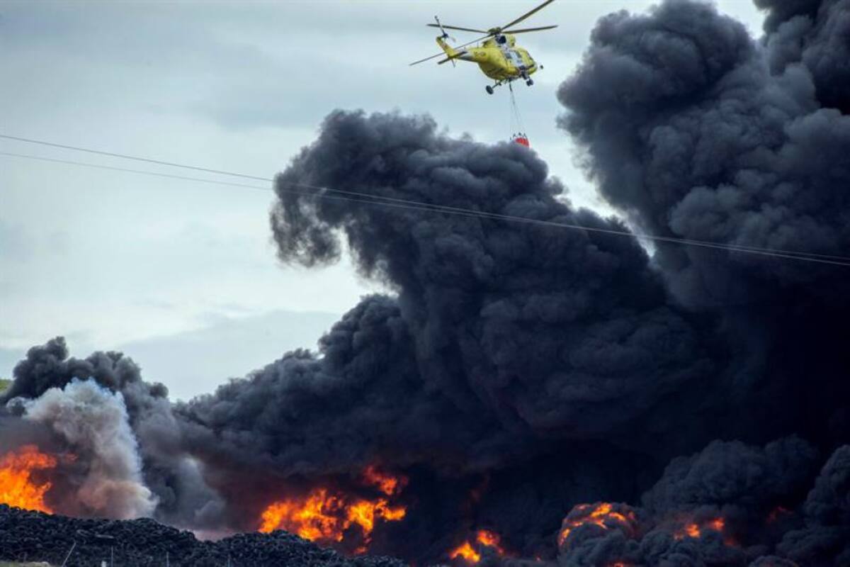 [En Fotos] Incendio en cementerio de neumáticos genera alerta en España