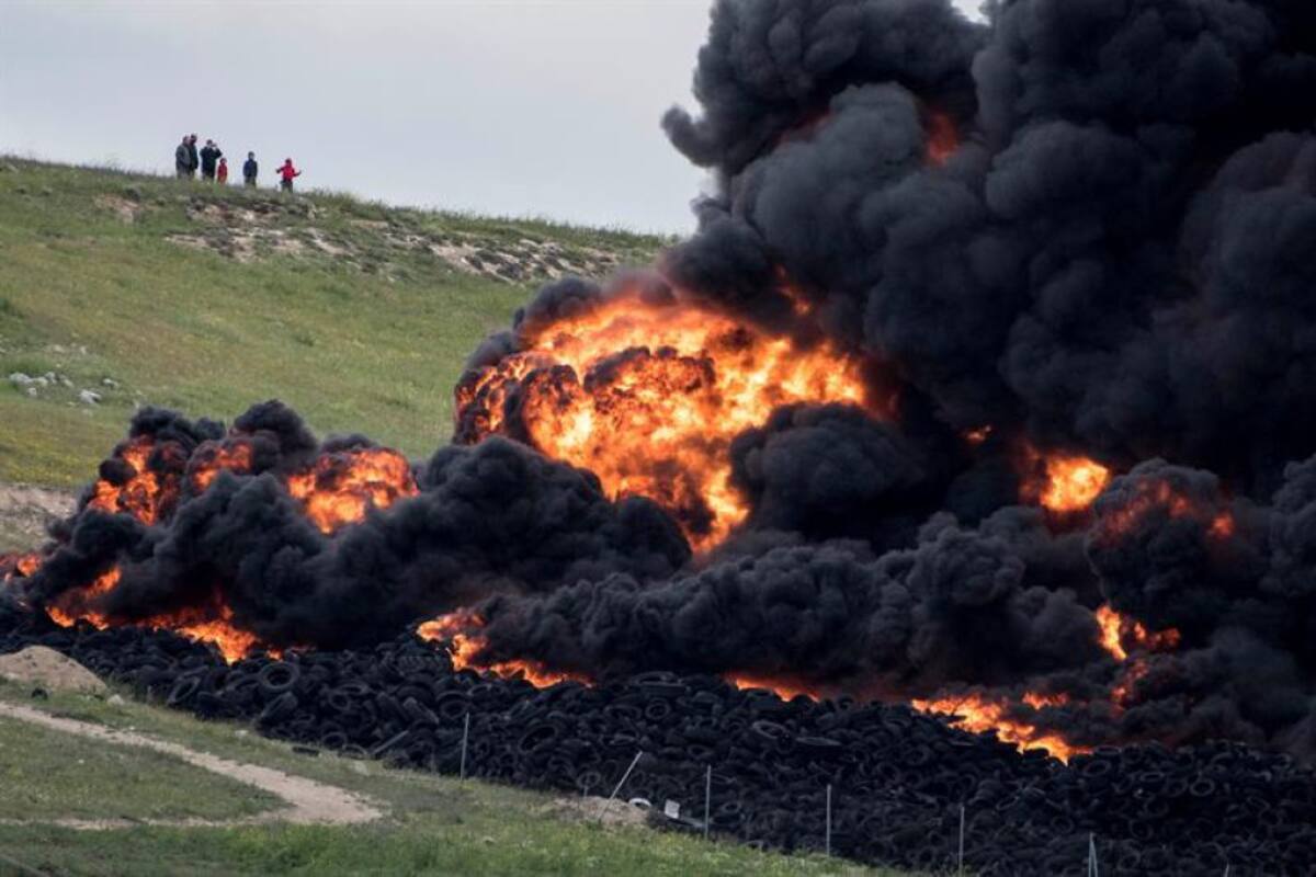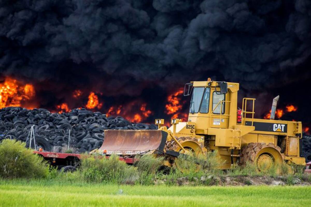 • El humo de más de 100 mil llantas usadas ha provocado el desalojo de personas de edificios aledaños.