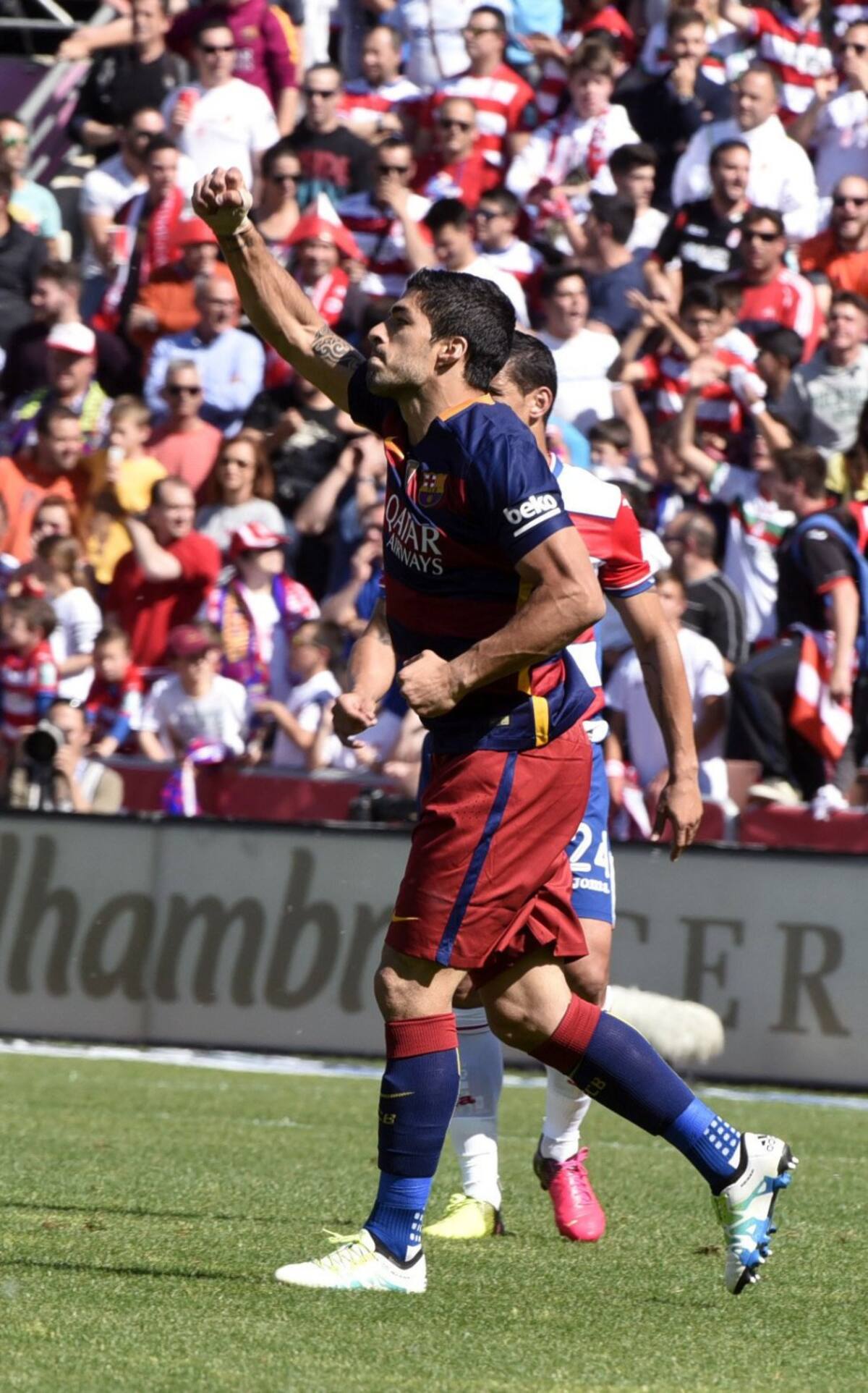 El delantero uruguayo del FC Barcelona Luis Suárez celebra el gol marcado ante el Granada