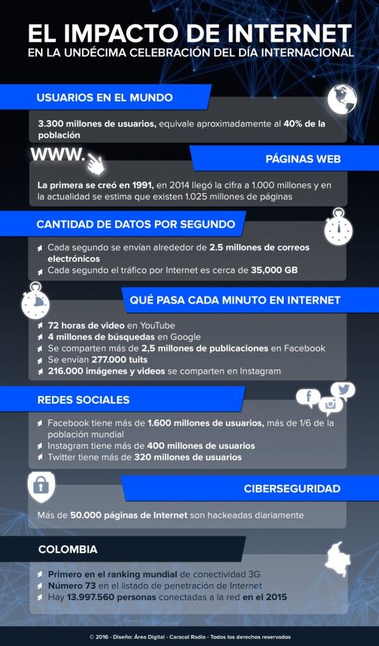 Han pasado 47 años y en la actualidad más de 3.300 millones de personas en el mundo están conectadas a la red, un equivalente del 40 por ciento de la población. Millones son invertidos en cada país para acabar con la brecha de accesibilidad al internet.