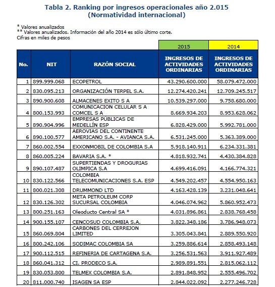 La Superintendencia de Sociedades reveló que los activos de las 1.000 empresas más grandes de Colombia y que entregaron su información de acuerdo con las normas internacionales, llegaron a $778,9 billones, lo que presenta un crecimiento del 9% en comparación con el 2015.