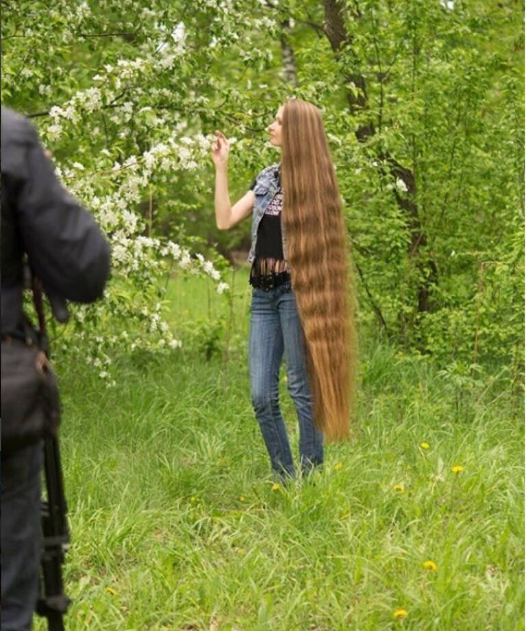 Desde el 2003 la rusa Dashyk Gubanov Vesnushka no se corta el cabello, porque una de sus metas es que le llegue hasta los pies.