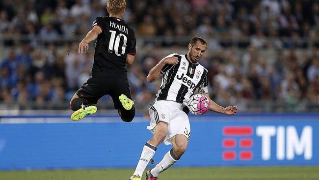 Foto 4 de 14Honda y Chiellini en disputa por el balón durante la final de la Copa Italia.
