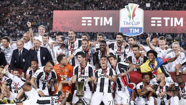 Foto 14 de 14El plantel de Juventus con el trofeo de la Copa Italia.