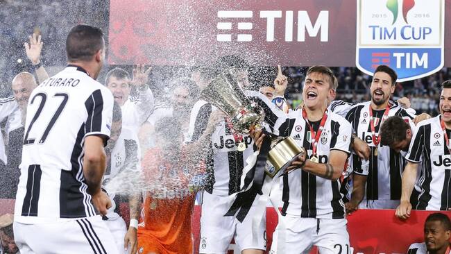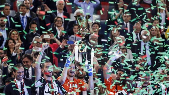 Foto 12 de 14Jugadores de Juventus recibiendo el trofeo de la Copa Italia.