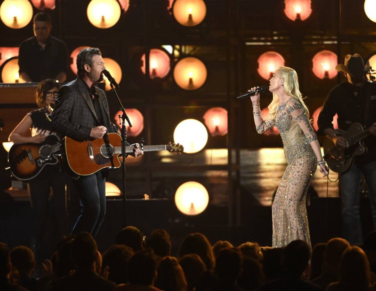 Gwen Stefani y Blake Shelton, pareja en la actualidad, le pusieron el toque romántico a la ceremonia. Además, dejó ver las cualidades interpretativas de Gwen en el country.