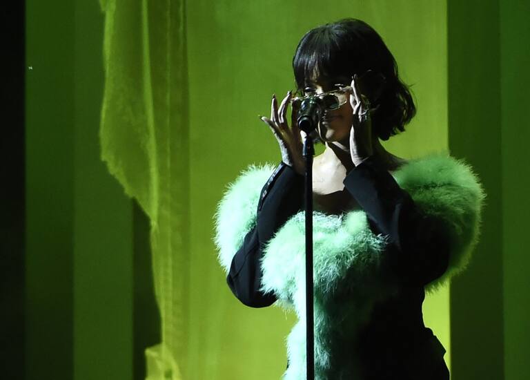 Rihanna trasladó a los asistentes a otra época con su interpretación de la canción 'Love On The Brain'.