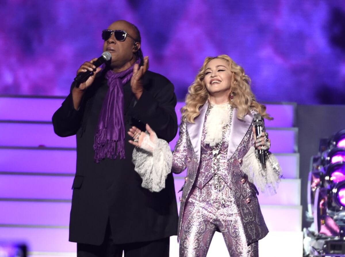 Madonna cerró la ceremonia rindiendo homenaje a Prince. Ataviada en un traje morado brillante, comenzó el número con una versión de 'Nothing Compares 2 U', que Prince escribió para Sinead O'Connor. Estaba sentada en un gran sillón purpura y cantó con lágrimas en los ojos mientras videos y fotografías de Prince se proyectaban tras ella. Stevie Wonder, con una bufanda morada, la acompañó después para 'Purple Rain', mientras el público en el T-Mobile Arena de Las Vegas les hacía coro.