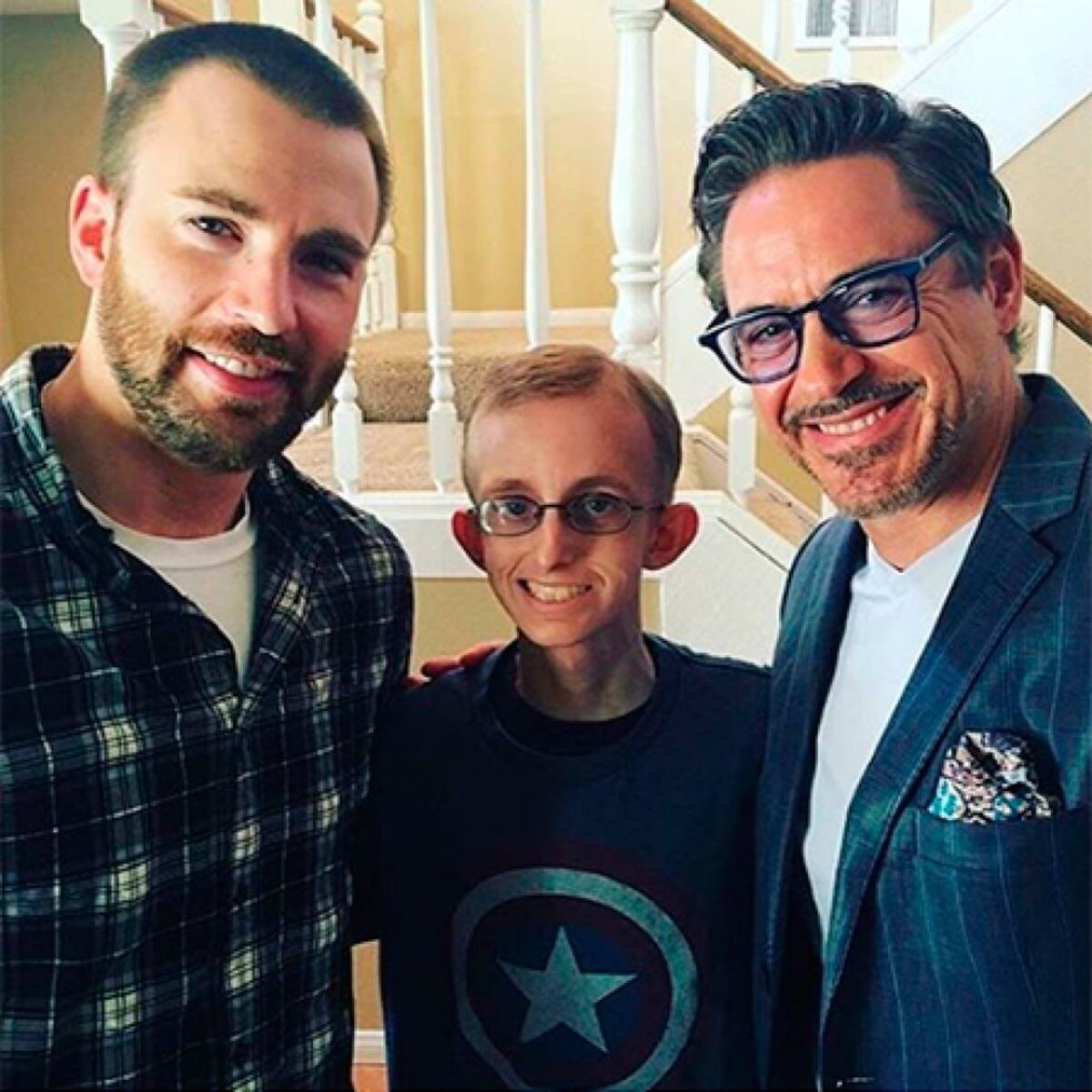 El adolescente de casi 32 kilogramos de peso abrió la puerta de su casa y quedó alucinado al descubrir que Robert Downey Jr. (Iron Man) y Chris Evans (Capitán América) no sólo dejaron a un lado sus diferencias sobre cómo salvar al mundo, sino que hicieron equipo con la estrella Gwyneth Paltrow (de la cinta Iron Man) para la misión de levantar el ánimo de Wilcox.
