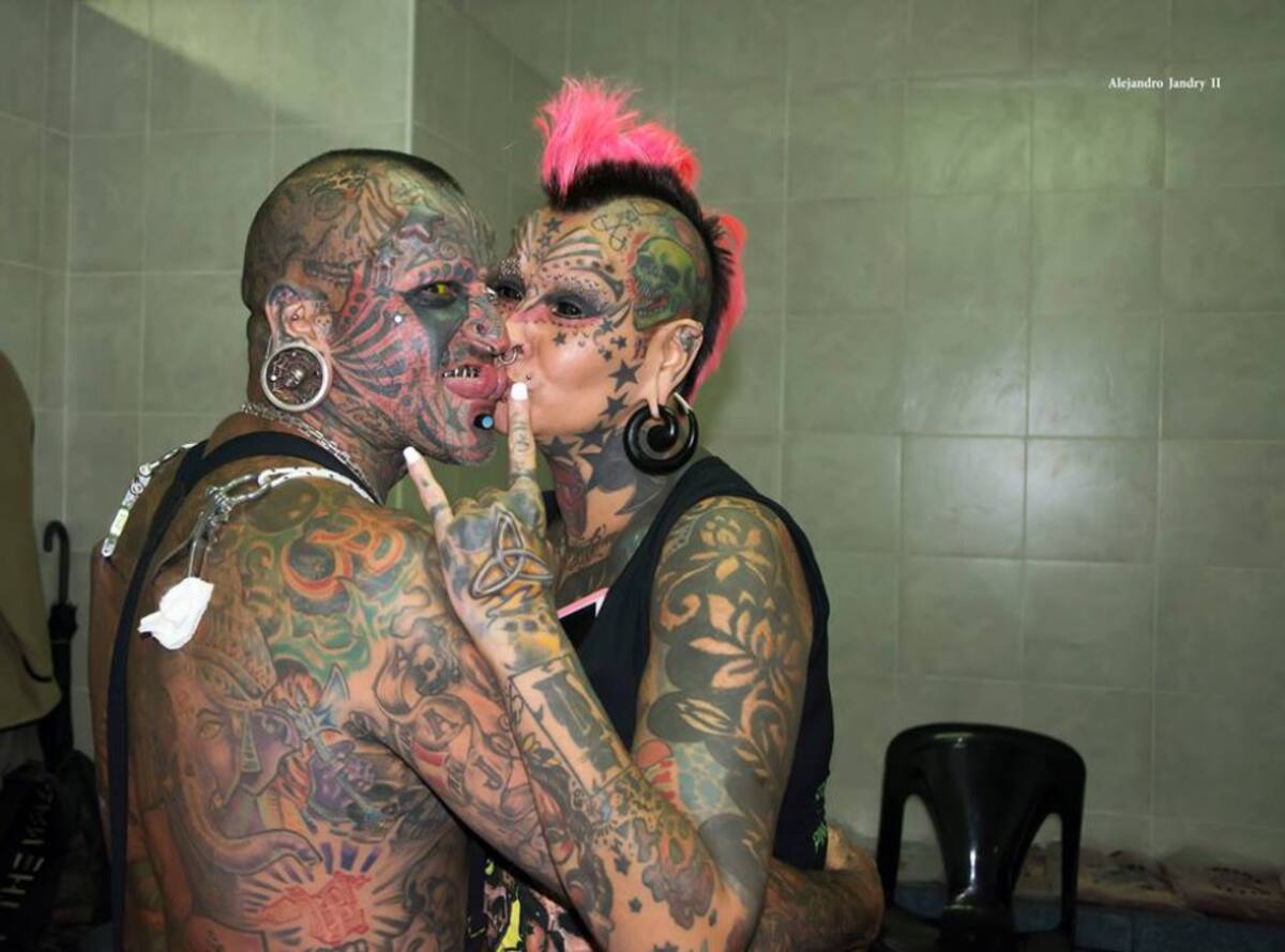 Y visiblemente comparten los mismos gustos, entre los dos tienen mas de 50 piercings, 4 implantes microdermales, 11 implantes corporales, 5 implantes dentales, 4 expansores de orejas, 2 caravanas, y piercings de lengua, además de un centenar de tatuajes.