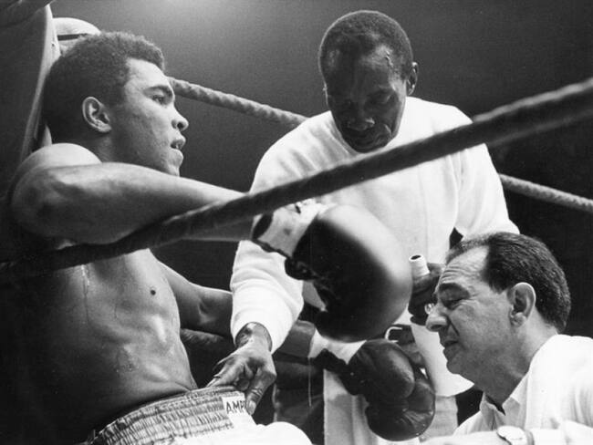 Foto 5 de 10Una foto de archivo datada el 10 de septiembre de 1966 de mundo de peso estadounidense pesado defiende al boxeador Muhammad Ali (L) siendo entrenado por su entrenador Angelo Dundee (R) y un ayudante (C) durante una pausa en su lucha contra German Karl Mildenberger en el 'Waldstadion' (Forrest satdium) en Francfort/Principal, Alemania. Nacido como la Arcilla de Casio, embalando la leyenda Muhammad Ali, doblado como ' el Mayor, ' muerto el 03 de junio de 2016 en Fénix, Arizona, EE.UU., a la edad de 74 años, un portavoz de familia dijo. (Fénix, Alemania, Estados Unidos).