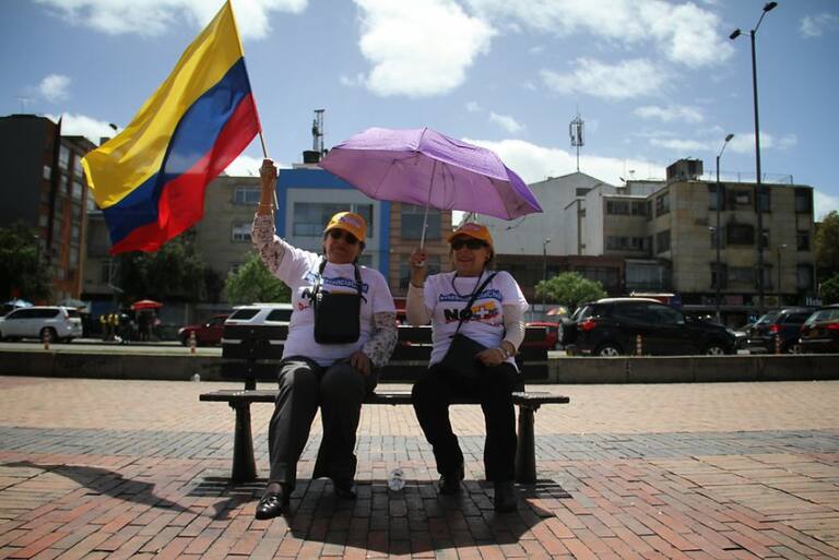 • En el norte de Bogotá el partido Centro Democrático comenzó la jornada de recolección de firmas en contra del referendo por la paz.