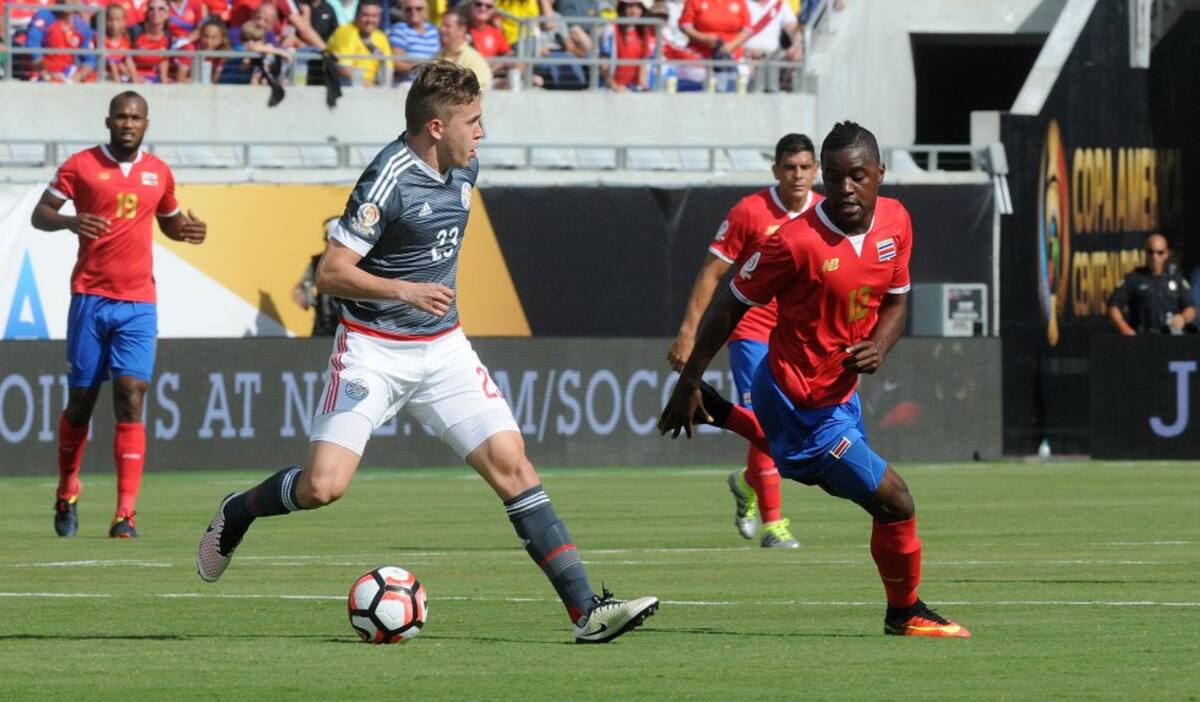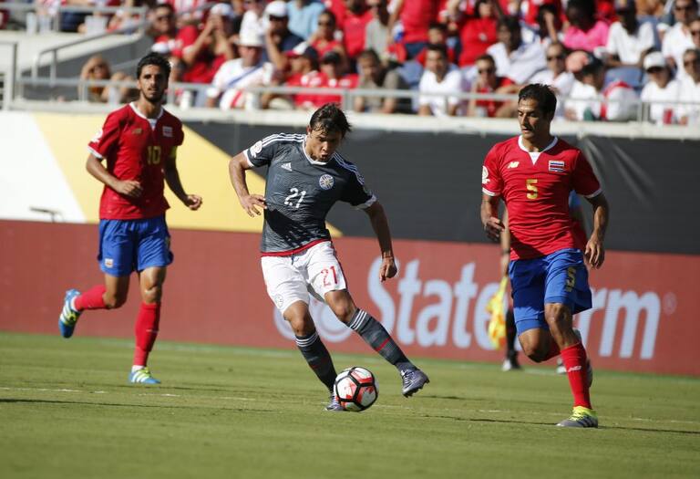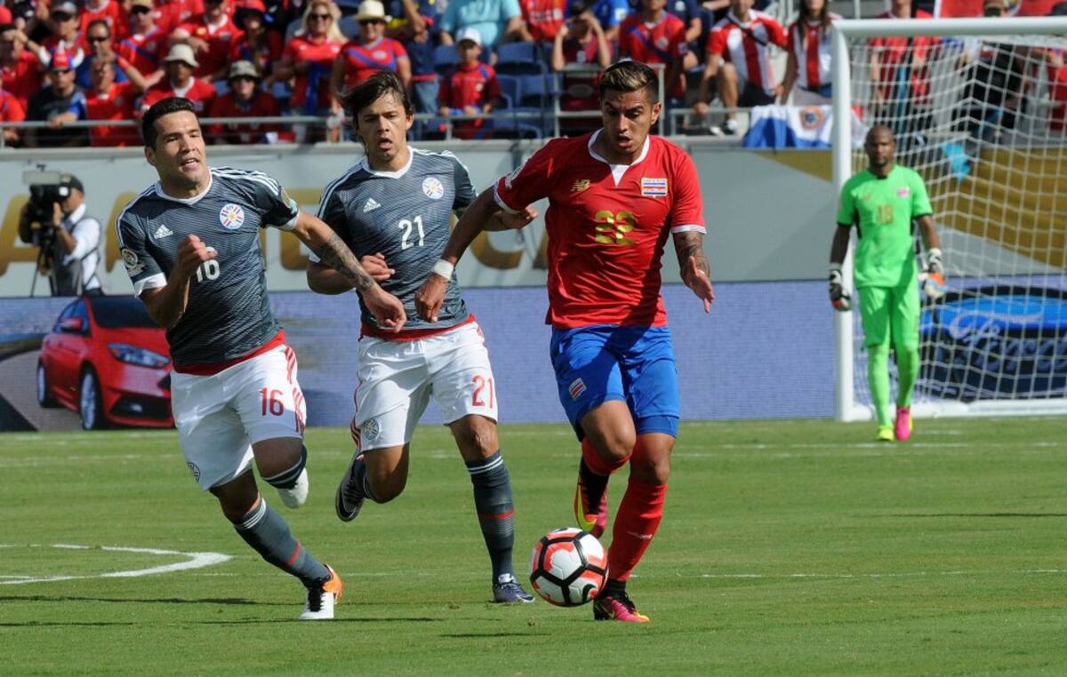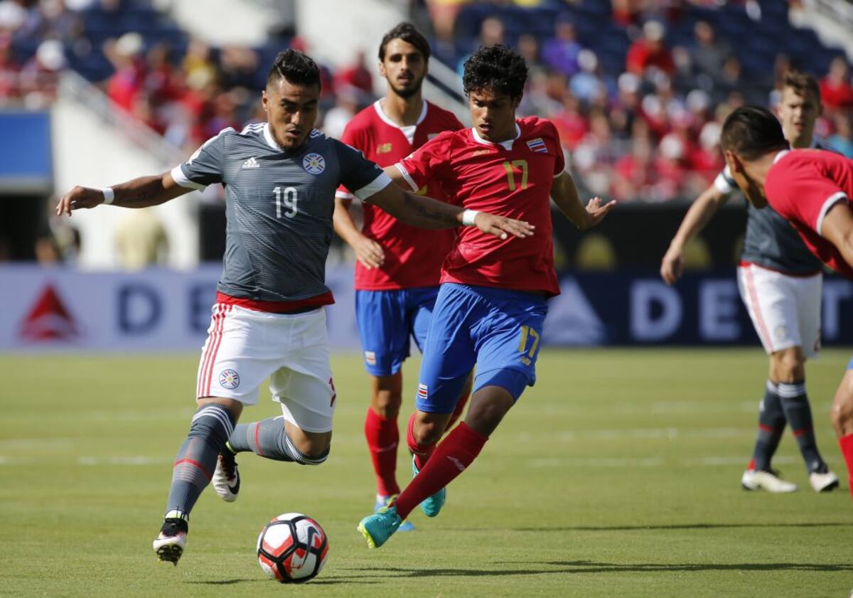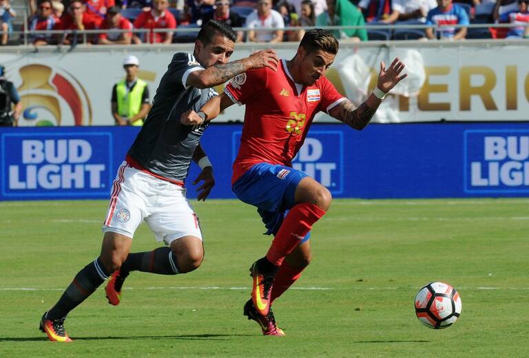 Derlis González de Paraguay ante Ronald Matarrita de Costa Rica.