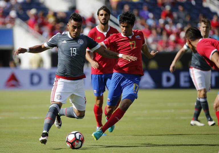 Óscar Romero en acción durante el partido Costa Rica vs Paraguay.