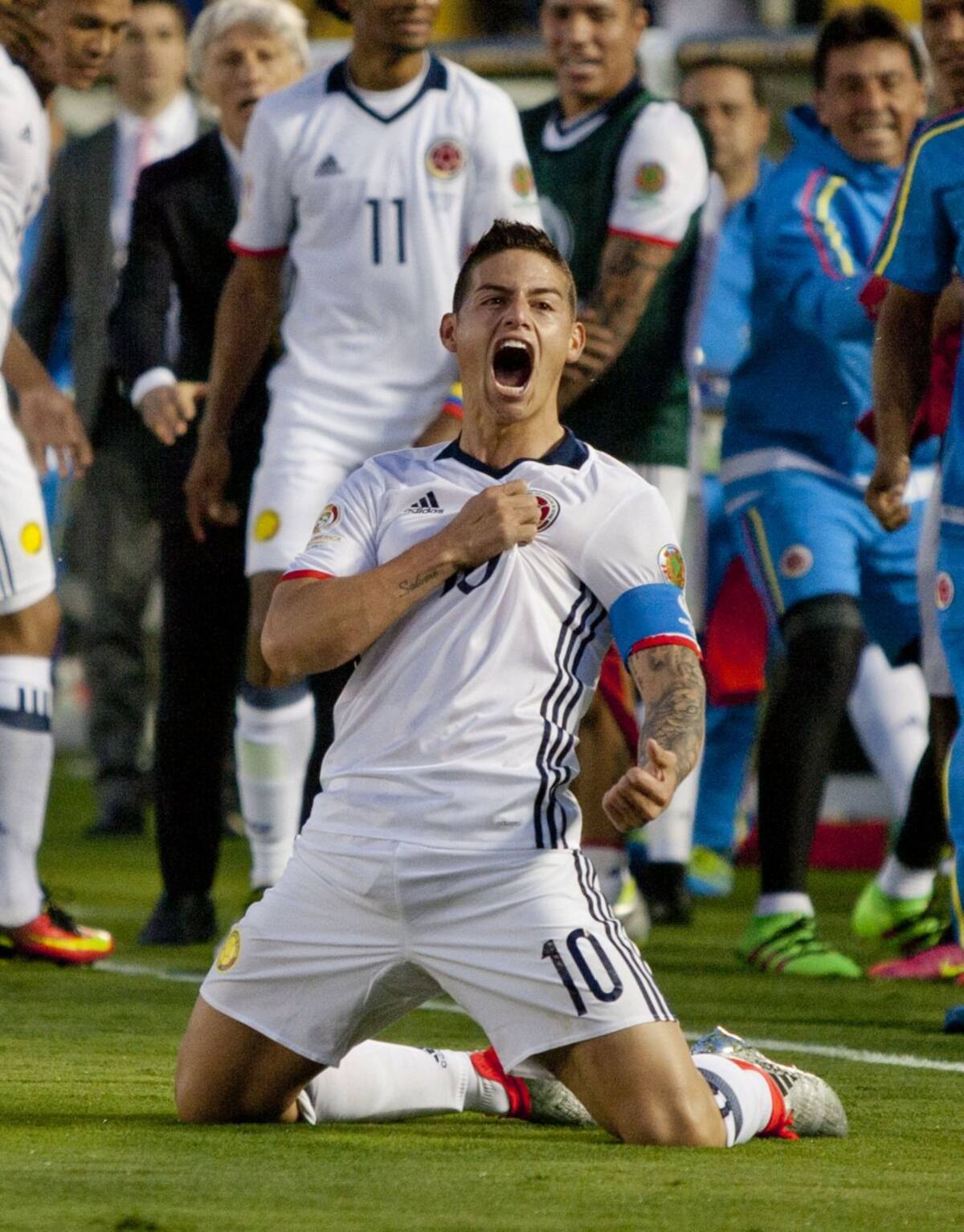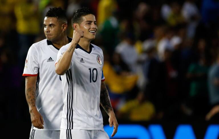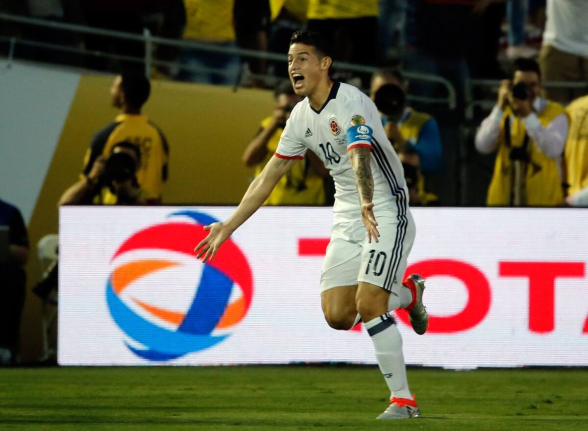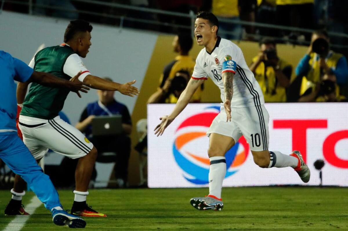James Rodríguez tras convertir el segundo gol de su selección