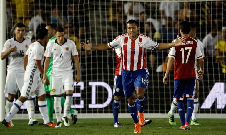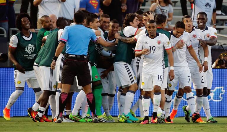 Los jugadores de Colombia celebrando el primer gol ante Paraguay