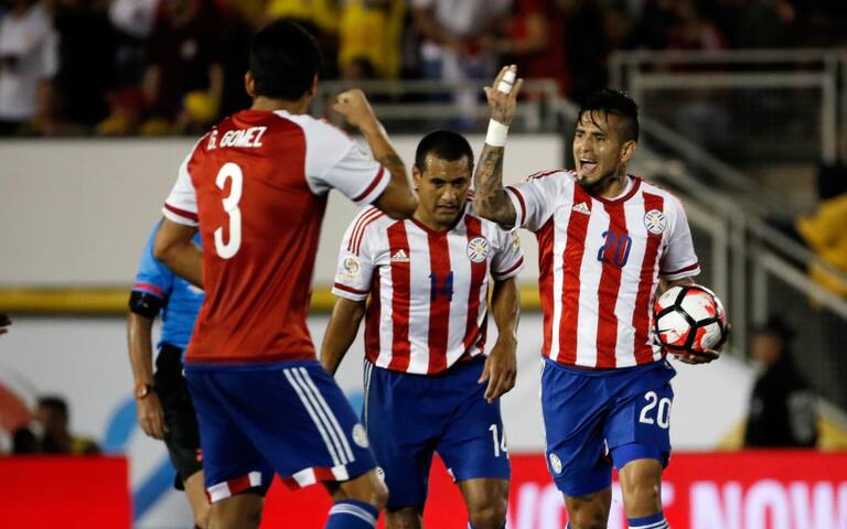 Los jugadores paraguayos celebrando el descuento de Víctor Ayala