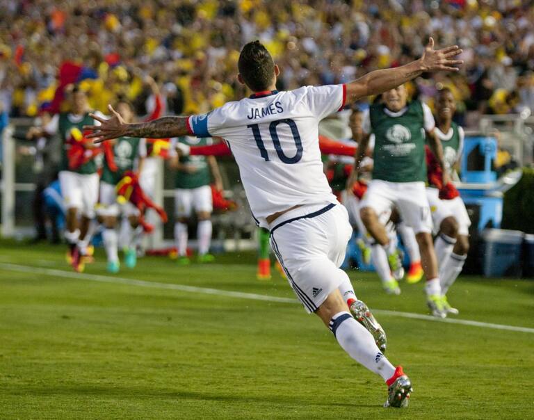 James Rodríguez tras marcar el segundo gol de Colombia
