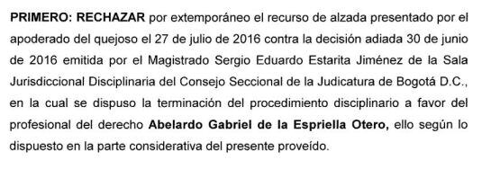 Judicatura estudió disciplinariamente al abogado Abelardo de la Espriella