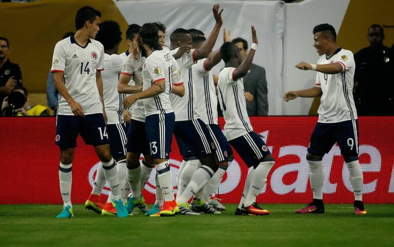 Jugadores de Colombia celebran el empate parcial de la Selección.