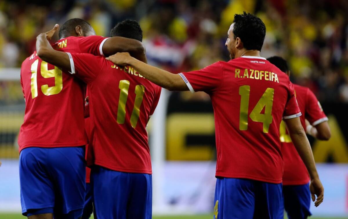 Los jugadores de Costa Rica celebran la primera anotación del encuentro.