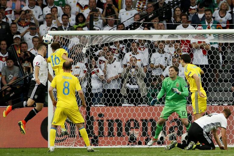 Boateng saca la opcion más clara del equipo ucraniano.