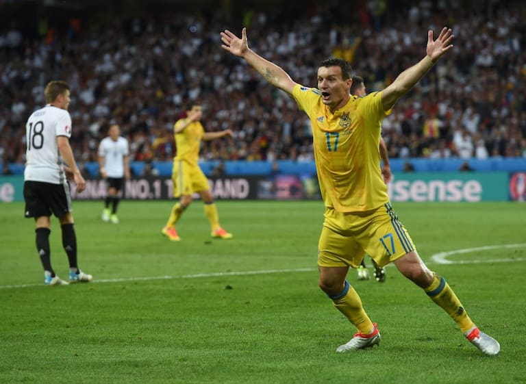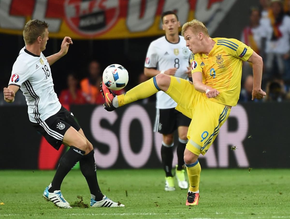 El equipo inicial de Ucrania para enfrentar a Alemania.