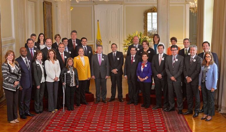 Todos los altos funcionarios del Estado se tomaron la foto con este nuevo distintivo en la solapa de sus abrigos que se suma a la paloma blanca que venían utilizando desde el inicio de las conversaciones de paz.
