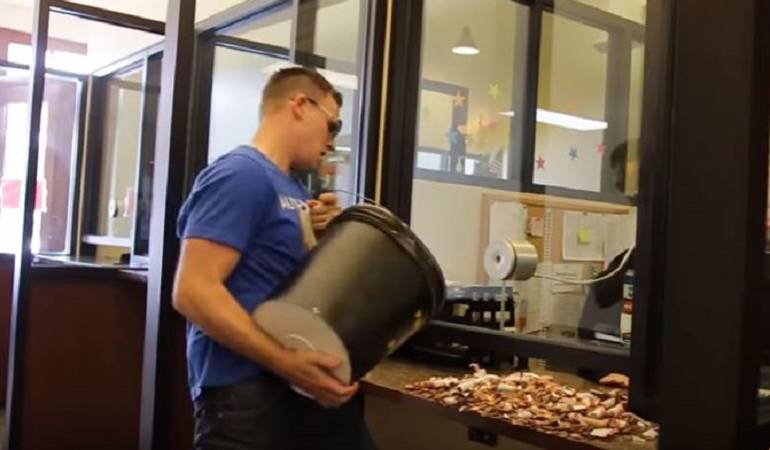 Así que lo que hizo Brett Sanders fue reunir aproximadamente 20 mil monedas pennies y fue a depositarlos a la ventanilla de pagos de la Oficina Municipal de Frisco. El personal de la oficina tardó unas 3 horas para recoger y contar las monedas, según informó el autor de la idea.