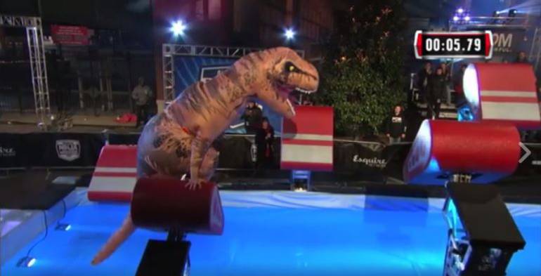 Un dinosaurio participa en 'guerrero ninja' y gana miles de 'me gusta' en Facebook