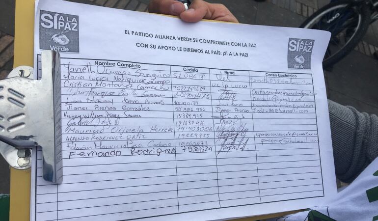 Verdes recogerán firmas por el “Sí a la paz”