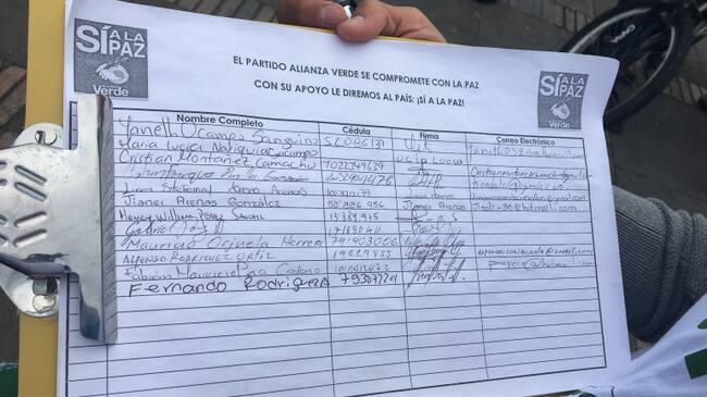 “Las calles no son solo para la resistencia civil y los que quieren la guerra, en las calles también vamos a estar los que queremos la paz, vamos a recoger esas firmas como mandato y para ir ambientando lo que será el masivo respaldo a la paz en el plebiscito”, dijo el copresidente de la alianza Verde Antonio Sanguino.
