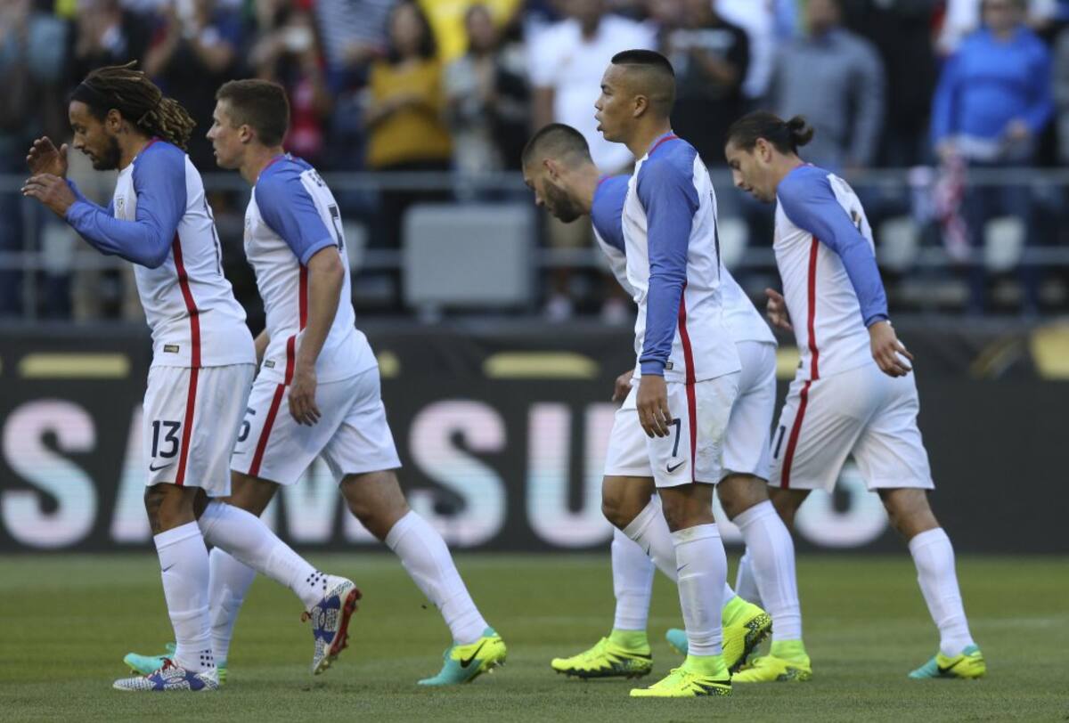 Jugadores de EE.UU. festejan un gol ante Ecuador por la Copa América Centenario en Century Link Field en Seattle (Washington)