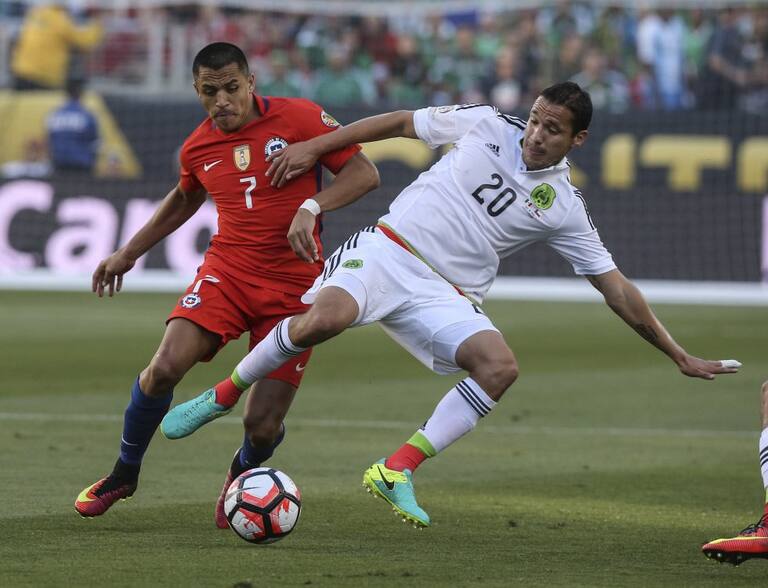 Dueñas y Alexis Sanchez disputan un balón.