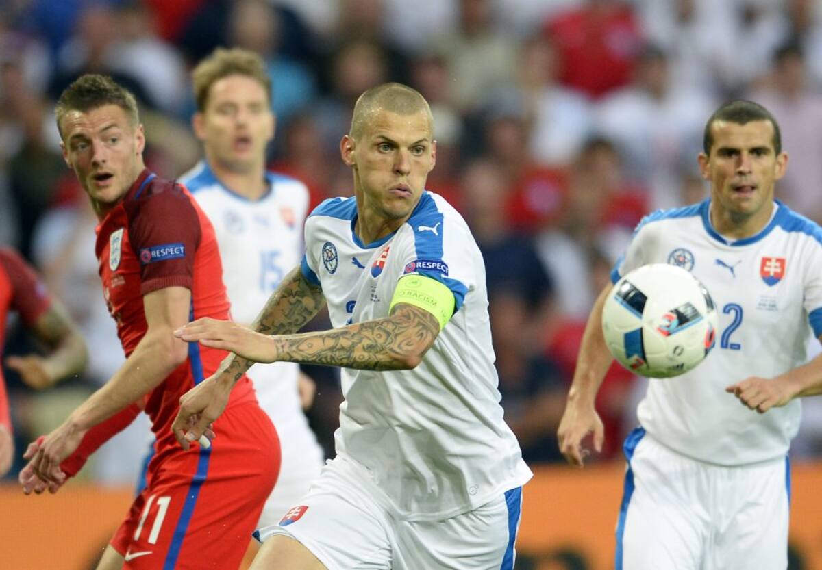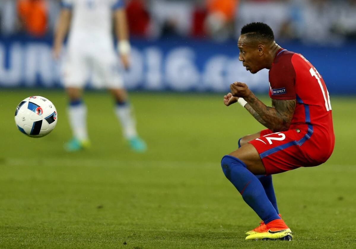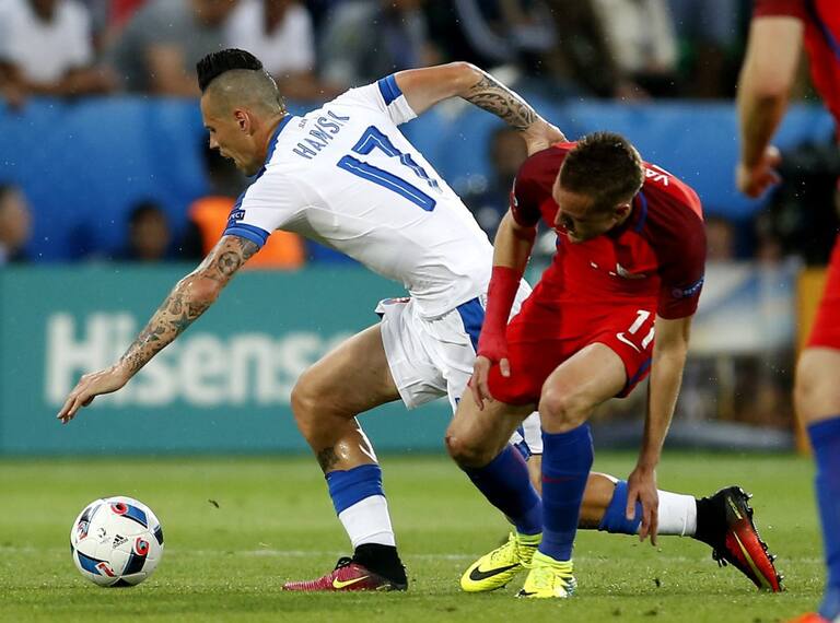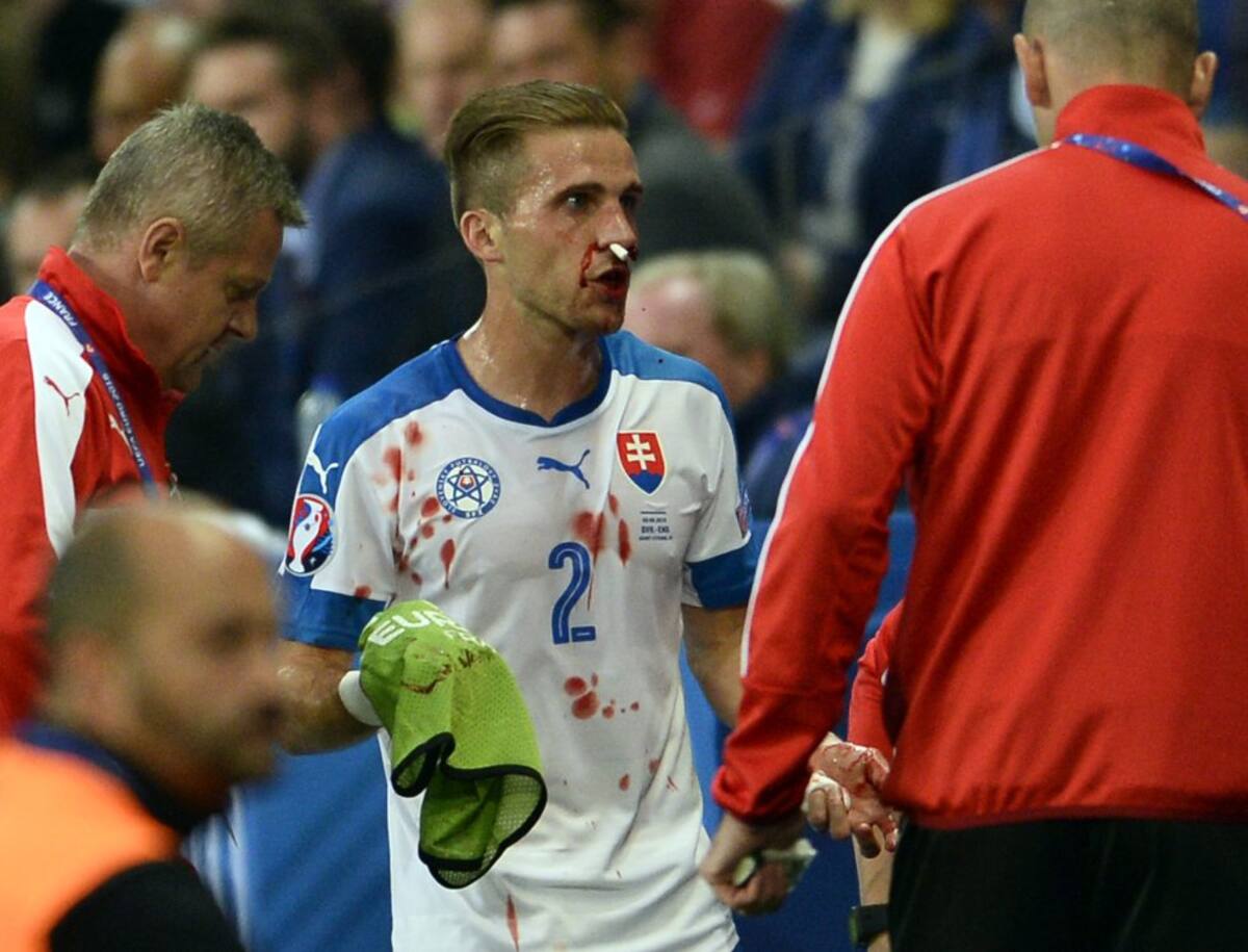 Pekarik de Eslovaquia luego de recibir un fuerte codazo.