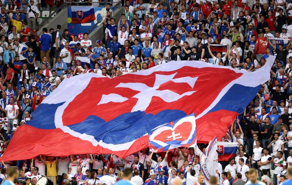 La bandera de Eslovaquia en la tribuna del estadio Geoffroy-Guichard.