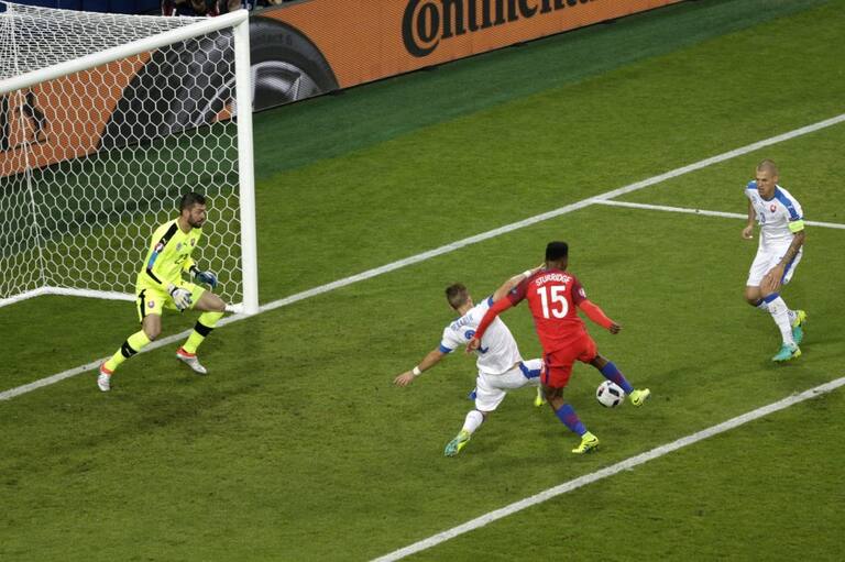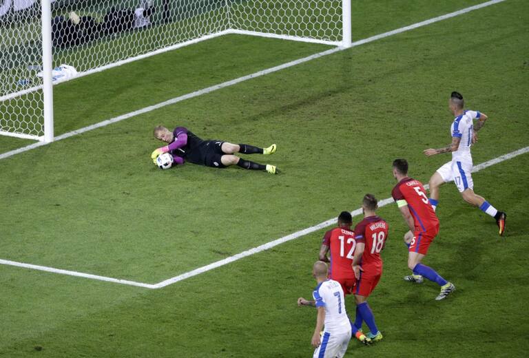 Hart ataja uno de los dos únicos remates a puerta de Eslovaquia.