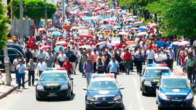 El sureño Estado mexicano de Oaxaca revivió este domingo la pesadilla que lo aquejó durante más de medio año en 2006: enfrentamientos armados que parecían el escenario de una guerra, entre maestros disidentes y las fuerzas de seguridad. Tras una semana de bloqueos carreteros por parte de los profesores, la policía los dispersó con gases lacrimógenos y recibió en respuesta pedradas y cohetones. Hasta el momento han sido reportadas seis personas muertas, 21 policías lesionados y un número aún incalculable de maestros y civiles heridos por arma de fuego.