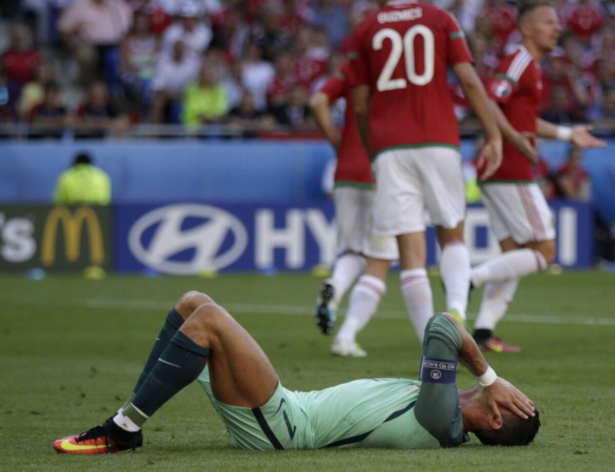Cristiano Ronaldo se lamenta tras la primera anotación húngara.