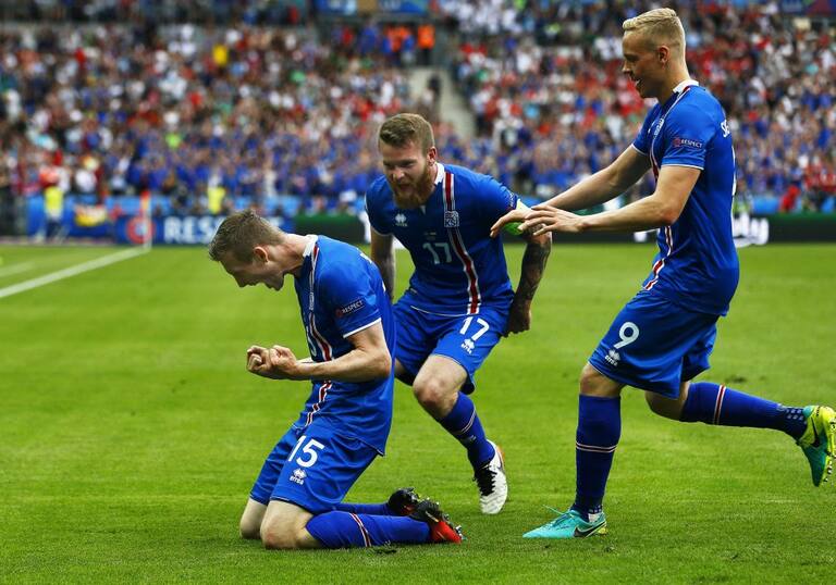Los jugadores de Islandia celebrando el gol que les daba la ventaja