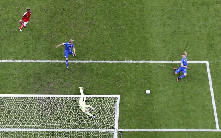 El momento del segundo gol que selló la victoria y clasificación de Islandia