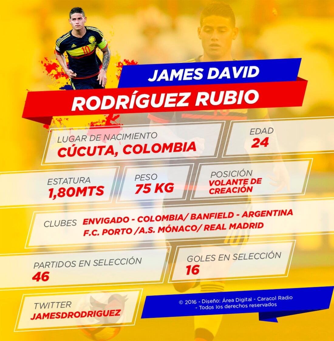 El '10' colombiano lleva 46 partidos y 16 goles con el equipo colombiano.