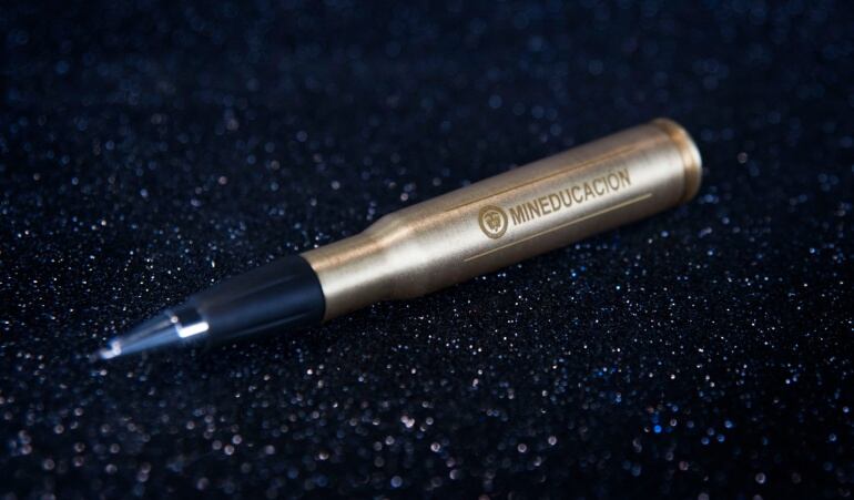 Un casquillo de bala, calibre 50 al que le fue extraída la pólvora, y que fue creado entre el Ministerio de Educación, liderado por Gina Parody, y la agencia McCann Worldgroup, es la apuesta por un proyecto que permitirá cambiarle el rostro a la guerra y darle identidad a la Paz que está por llegar.